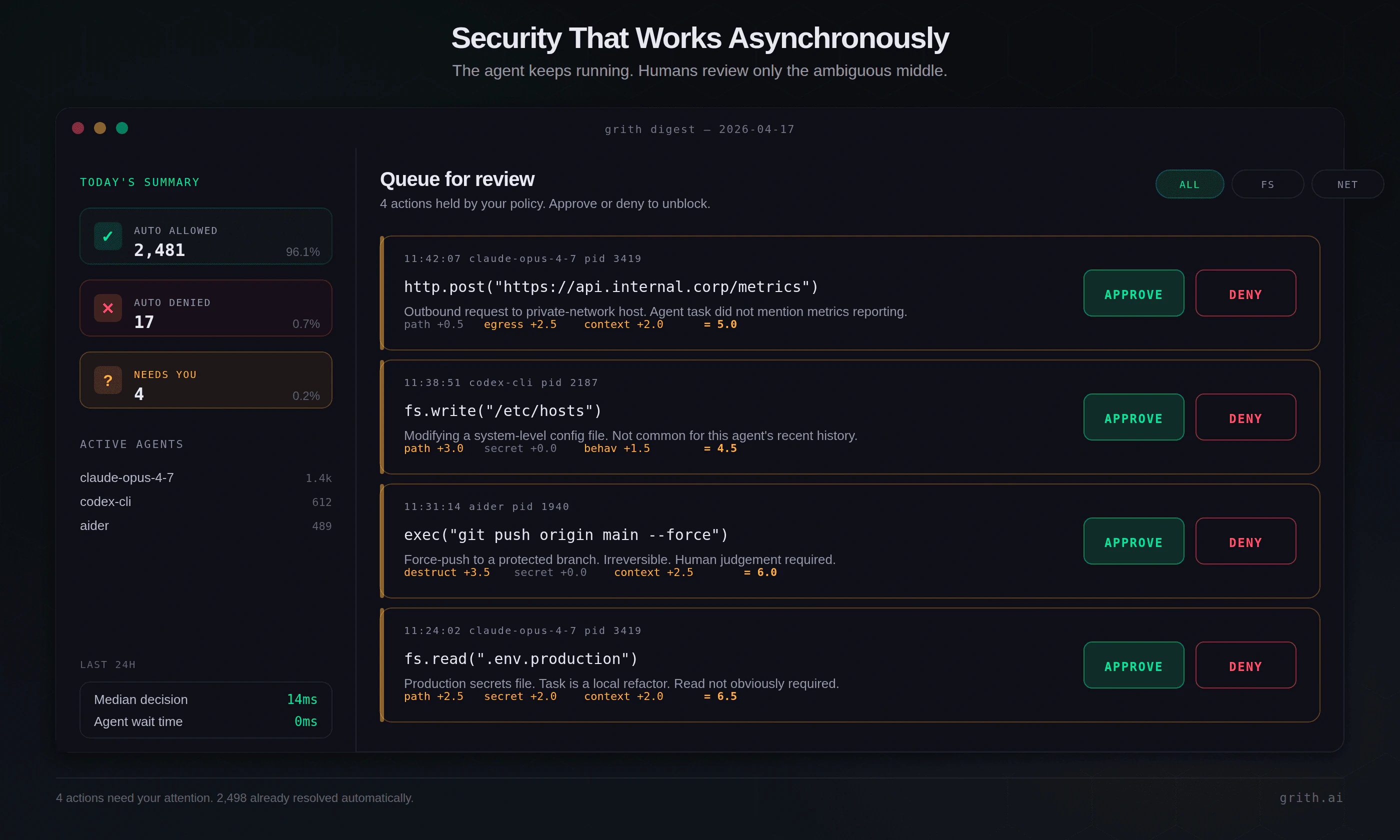 Claude made execution asynchronous. grith makes security asynchronous too.